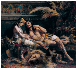 Samson, a judge of Israel, was known for his enormous strength killing a lion with his bare hands and ripping from its foundation the massive posts that held the doors to a city. He was also known for his carousing. Samson had been attacking and decimating the Philistines. The Philistine rulers went to a beautiful woman named Delilah who lived in the valley of Sorek. They offered her money if she could entice Samson and deliver to them the secret of his great strength. Falling in love with Delilah marked the beginning of Samson’s downfall.